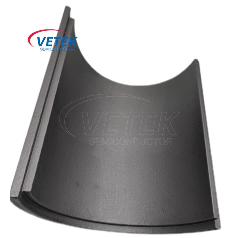 Цврстиот филц со висока чистота има добра топлинска спроводливост, што може рамномерно да ја распредели топлината на изворот на греење околу деловите од графитниот слој SiC Halfmoon и има добар ефект на зачувување на топлина. За време на епитаксиалниот раст на SiC, може да ја апсорбира топлината и полека да ја ослободи за да избегне локално прегревање или преладење, така што температурната разлика на површината на супстратот од силициум карбид се контролира во многу мал опсег, а температурната униформност обично може да достигне ± 1 - 2℃, што е многу важно за одгледување на епитаксијален слој од силициум карбид со униформа дебелина и конзистентни електрични својства.
